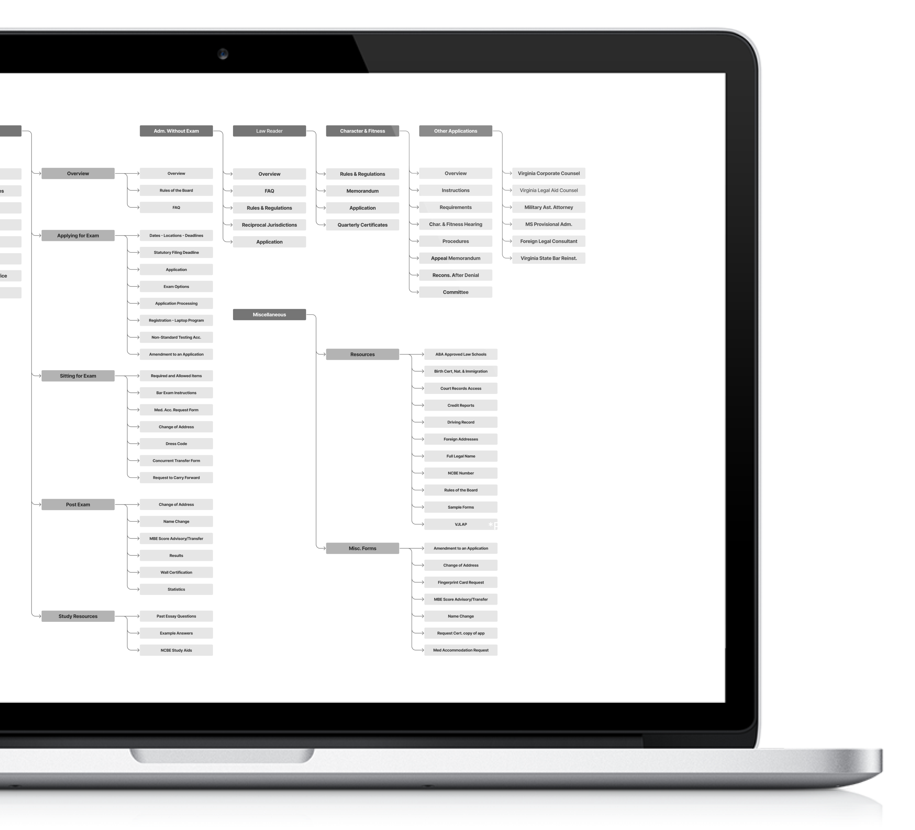To showcase my workflow methodology, I will leverage the redesign of the Virginia Bar Admissions site, providing a tangible example of how I approach and execute my work.
